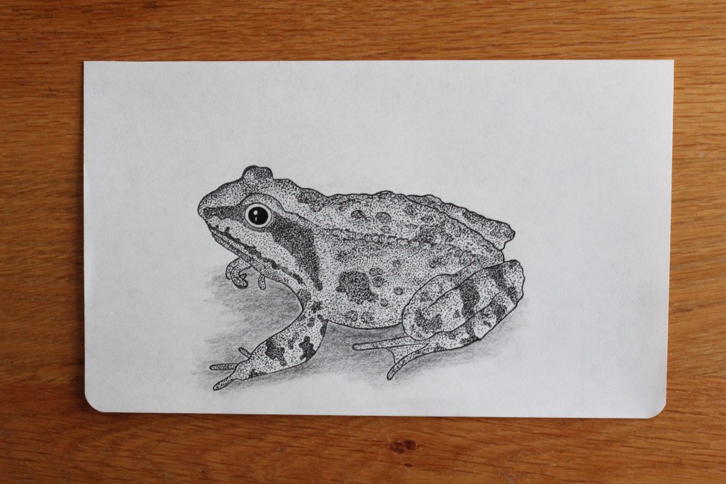 This frog is drawn with a 0.5 mm fineliner over a basic pencil sketch.
